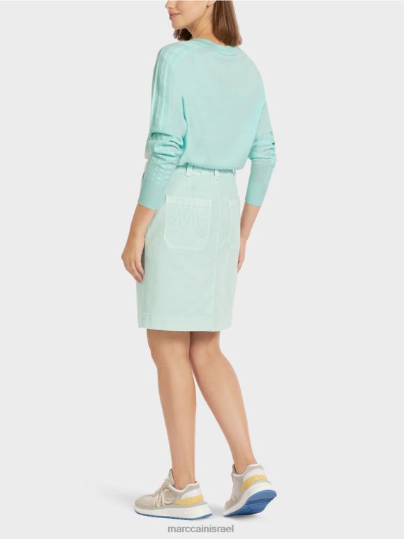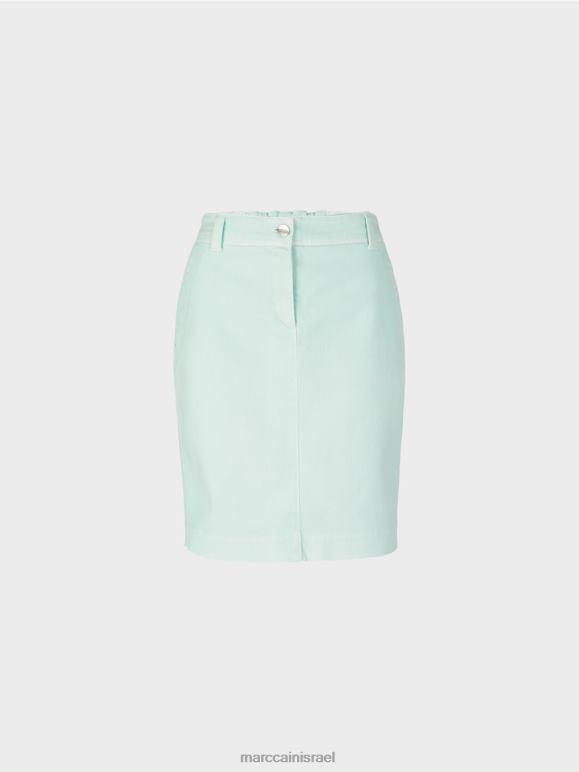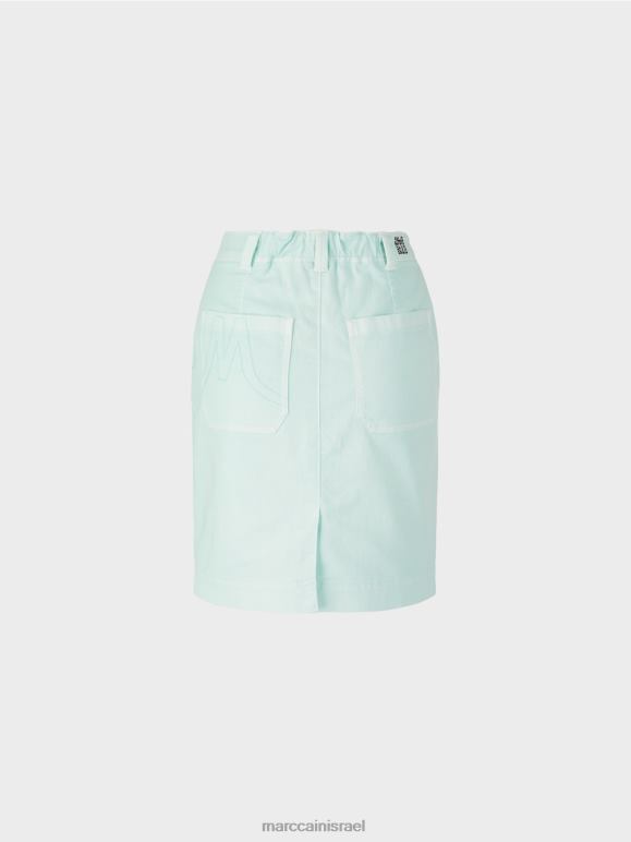 חצאית ג'ינס עם אפקט כביסה יוקרתי. רצועת המותן האלסטית מאחור ופתח האוורור בתפר האחורי הופכים אותו לנוח להפליא ללבישה. לחצאית המיני הזו יש שני כיסים צדדיים בחזית והיא מהודקת עם רוכסן וכפתור. הכיס האחורי השמאלי כולל את ה-'m' של הלוגו של Marc Cain. בגד זה עשוי מכותנה אורגנית ונושא את תווית הקיימות "לחשוב מחדש ביחד".