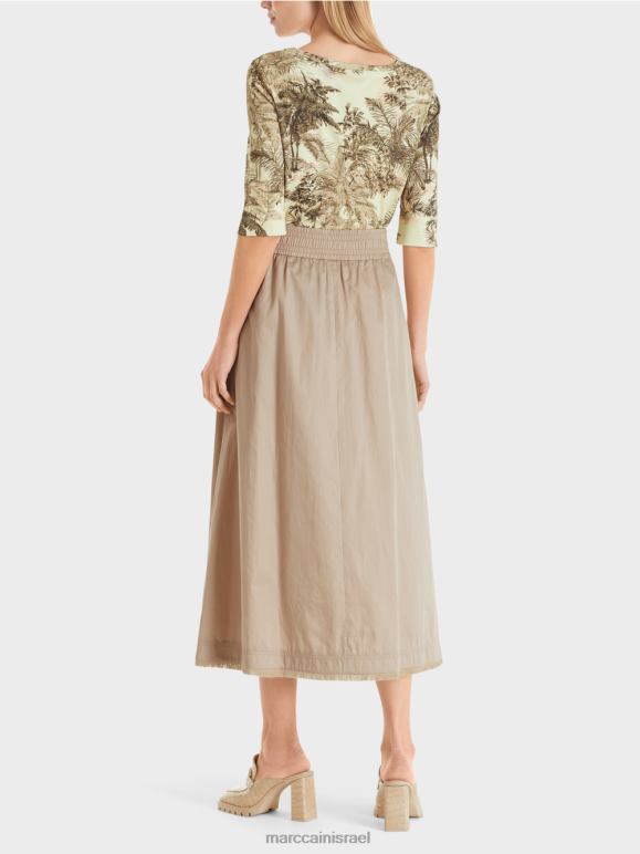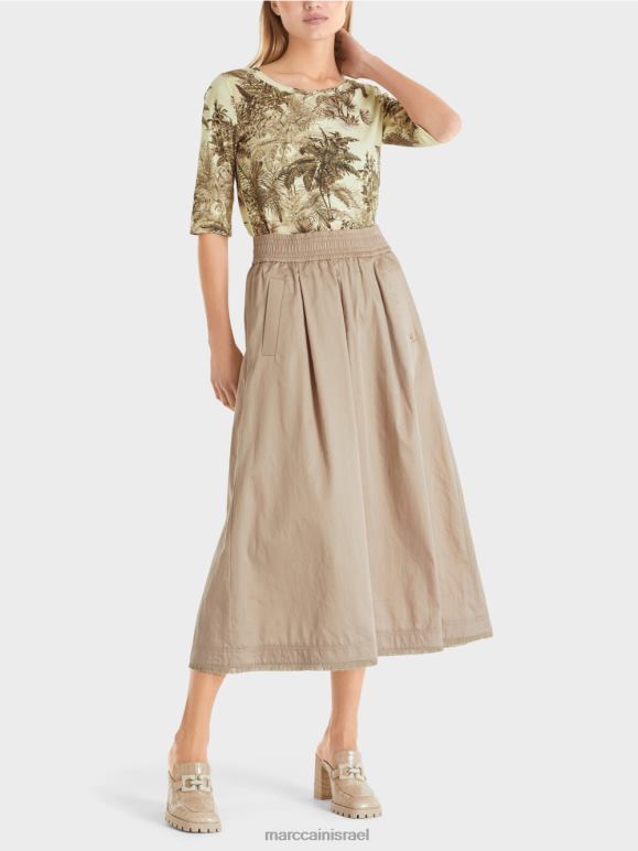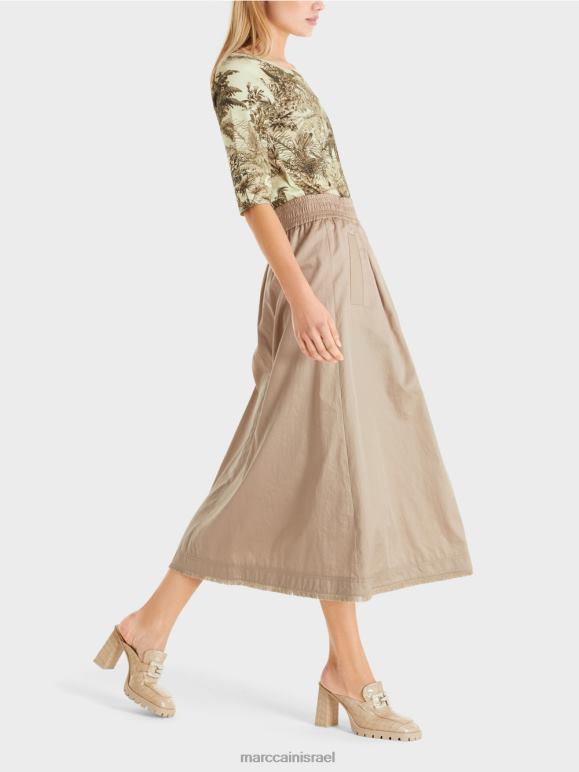 לחצאית באורך השוק יש רצועת מותניים ומתרחבת החוצה לכיוון המכפלת. לקצה המכפלת יש שוליים עדינים. הוא מתהדר בכיסים מושכים את העין עם אפקטי תפר. החצאית אלגנטית אך קלה ללבישה ולשילוב.