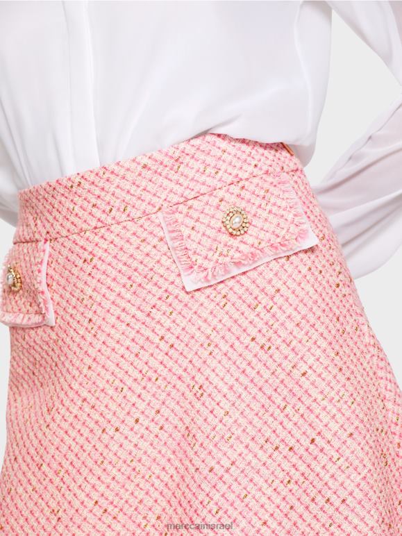 חצאית המיני המתרחבת הזו היא התייחסות לשנות ה-60, כאשר אורך המיני נכנס לראשונה לאופנה. החומר דמוי הבלוק מודגש על ידי חוט נוצץ. כפתור דקורטיבי על כיסי הדש המדומה הולך בצורה מושלמת עם זה. הדשים שוליים ושכבות תחתיות בבד עדין במיוחד. ניתן למצוא שוליים גם על המכפלת. החצאית מרופדת להתאמה מושלמת.