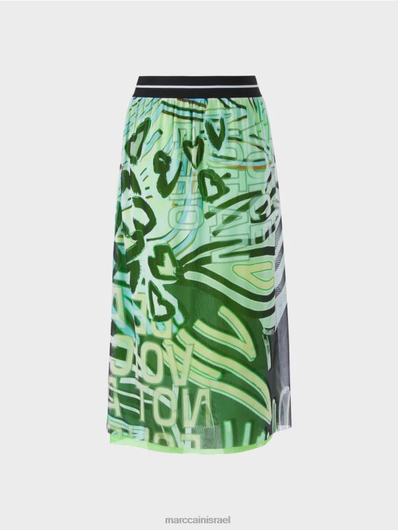 החצאית חתוכה צר. ג'רזי הטול וחגורת הגומי גמישים והפריט קל ללבישה. המוטיב בהשראת הגרפיטי הוא דמוי קולאז' וכולל את הכתובת: "היה קול ולא הד". בד רשת בצבע פלואור מציץ מתחת לשוליים.