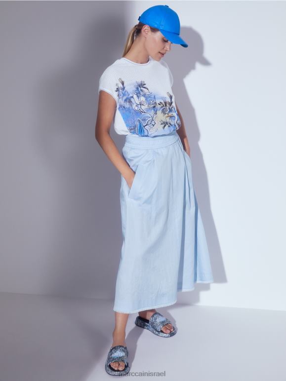 לחצאית באורך השוק יש רצועת מותניים ומתרחבת החוצה לכיוון המכפלת. הוא מתהדר בכיסים מושכים את העין עם אפקטי תפר. לשוליים יש שוליים עדינים. החצאית אלגנטית אך קלה ללבישה ולשילוב.