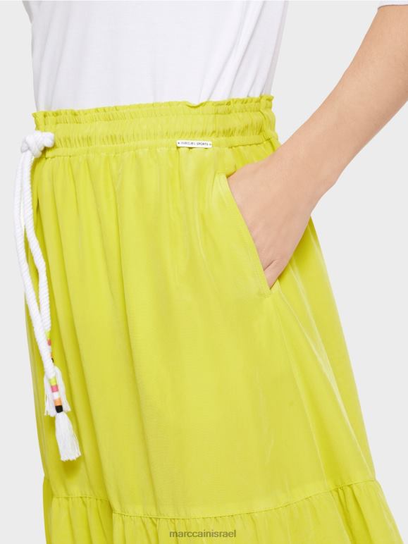 חצאית עטיפה ברכות בצללית יפה. חצאית נדיפה באורך בינוני בצבעים פשוטים היא הבייסיק האידיאלי לקיץ. רצועת המותן הנמתחת עם שרוך הופכת אותו לנוח מאוד ללבישה. כיסי צד פרקטיים מספקים מקום לכל הפריטים החיוניים שלך.