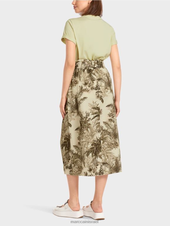 חצאית בתערובת ויסקוזה/פשתן/כותנה נוחה להפליא. העיצוב מעט מתרחב ויש לו כיסים בתפר הצד. יש לו כפתור אלגנטי כפול חזה בחזית. החצאית יושבת בנוחות על המותניים הודות לרצועת המותן. יש לו רוכסן תפר מאחור.