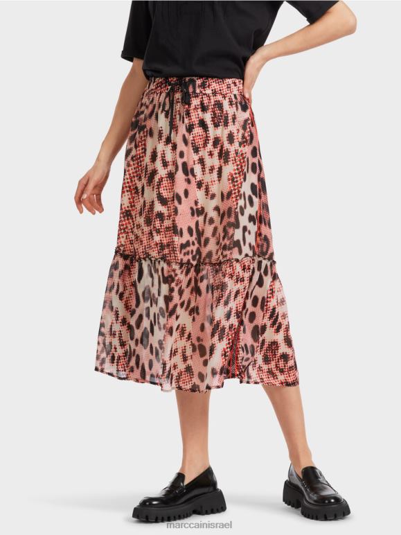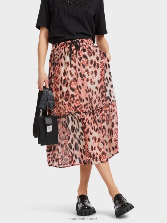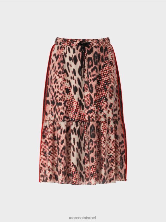לחצאית יש רצועת מותן לריצה והשלב גורם לה להתנדנד לרחבה. הצללית מוגדרת על ידי הקלילות והזרימה הרכה של ויסקוזה. הבטנה מבטיחה וילון הרמוני. העיצוב ספורטיבי: הדפס אריה מודגש עם צמה לאורך התפר הצדדי: הצמה עשויה מרצועת רשת עם שוליים מנוגדים.