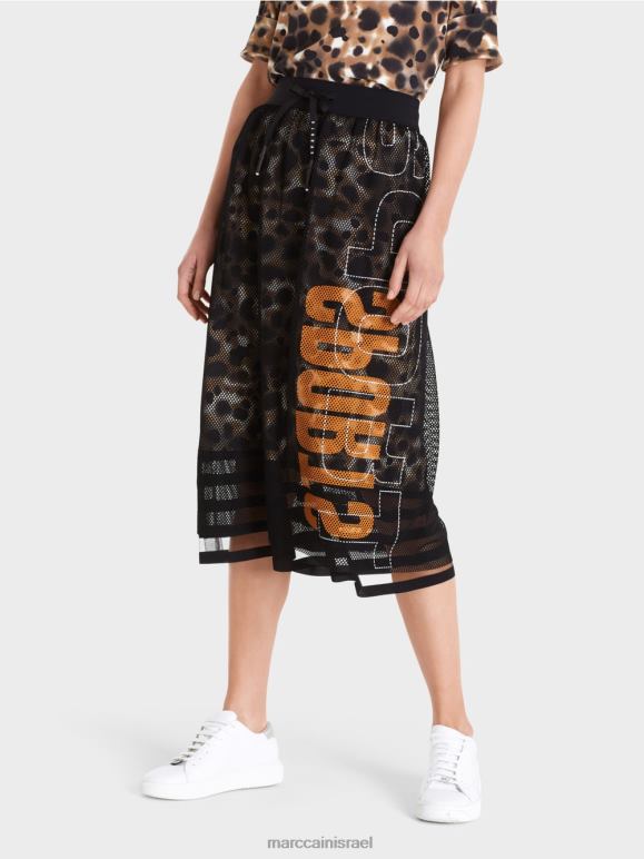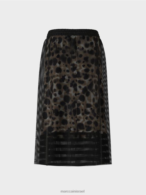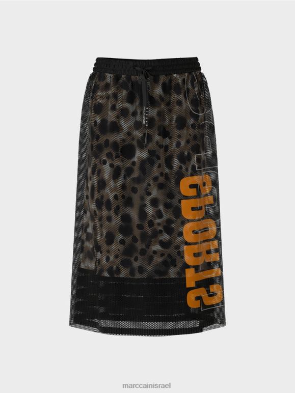 חצאית רשת זו מציגה חומר חיצוני שקוף ובטנה בהדפס עור פרה. המראה הספורטיבי מודגש על ידי כיתוב גדול של Mc Sport בצד. הצללית הרופפת מתהדרת בחגורת מותן אלסטית עם שרוך.