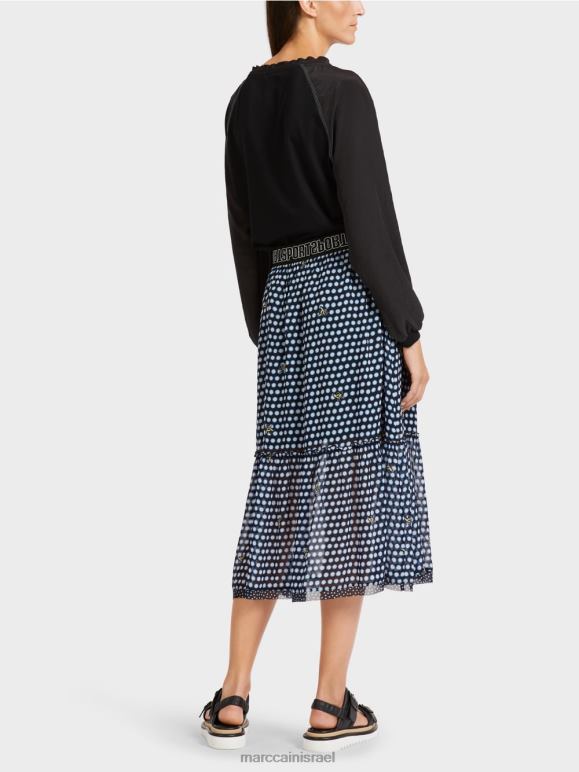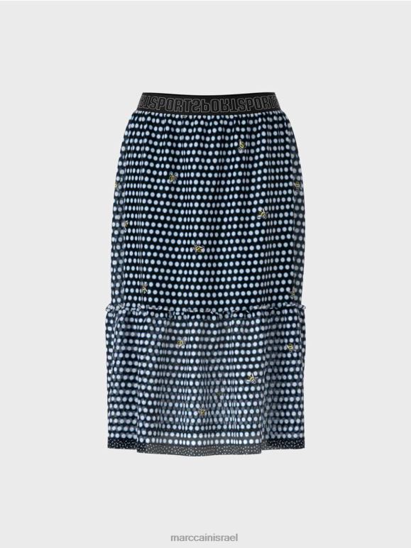 העיקרון הרומנטי של החצאית המדורגת מתורגם לאסתטיקה עכשווית על ידי הנקודות התוססות וה עיצוב דבורים. הוויסקוזה הזורמת ברכות מעניקה לחצאית צללית אלגנטית והבטנה מבטיחה וילון מושלם.