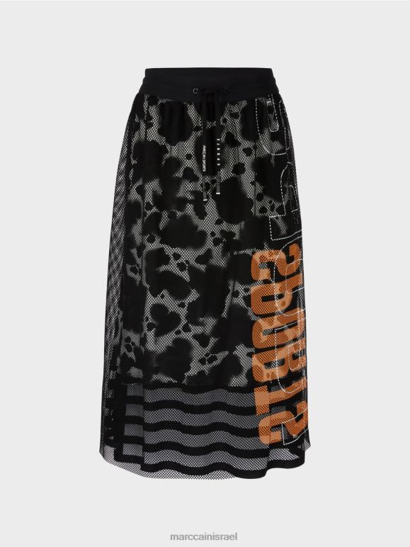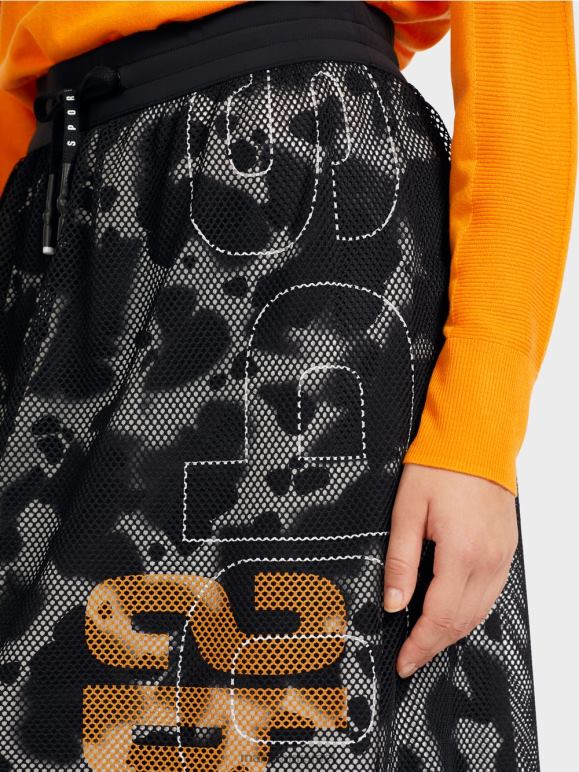 חצאית רשת זו מציגה חומר חיצוני שקוף ובטנה בהדפס עור פרה. המראה הספורטיבי מודגש על ידי כיתוב גדול של Mc Sport בצד. הצללית הרופפת מתהדרת בחגורת מותן אלסטית עם שרוך.