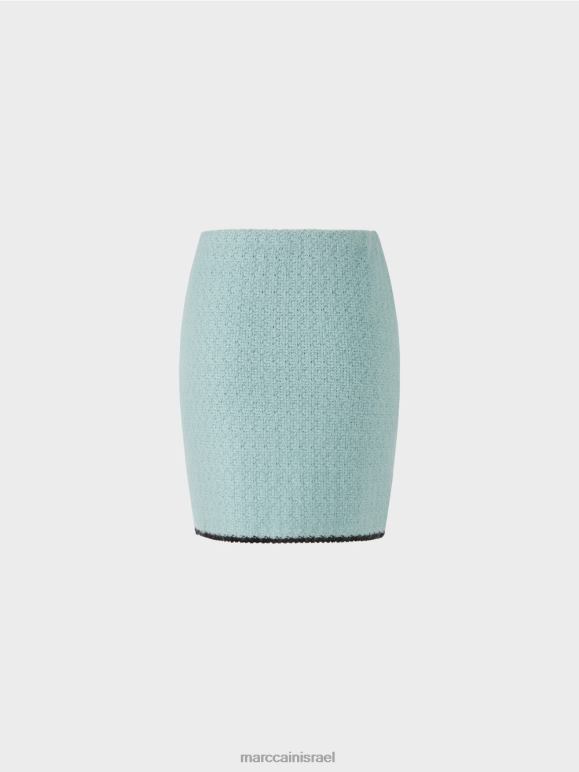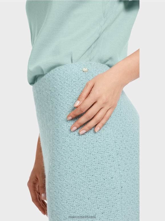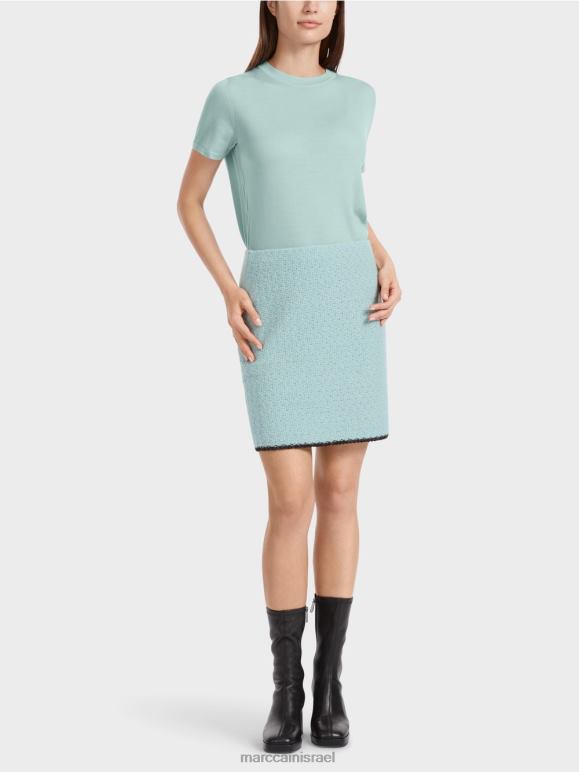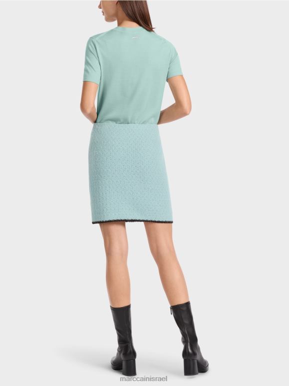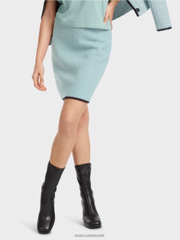 חצאית מיני מחבקת דמוית עם פסים מנוגדים בשולי השולי. חצאית מיני מרופדת זו נסרגת מתערובת חומרים עם אלפקה, צמר, אנגורה וכותנה ולכן "נסרגת בגרמניה": סריגת החוטים במכונות סריגה אולטרה מודרניות וגימור הבדים מתבצעים בגרמניה. החלקים הבודדים, כגון שרוולים, חלק קדמי וכו', נתפרים יחד בחברות שותפות אירופאיות.