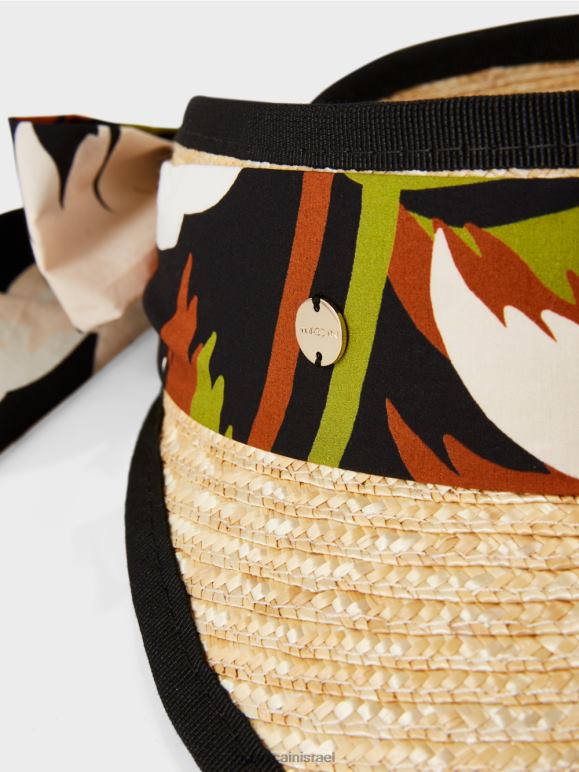 מגן השמש הזה עשוי מקש טבעי ונכרך בסרט שחור מכותנה. הטוויסט האופנתי מגיע מרצועת הכובע שניתן לקשור בקשת מאחור.