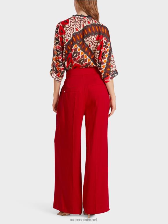 ראשי| הַלבָּשָׁה| מִכְנָסַיִים| אדום עמוק Marc Cain מכנסי פשתן עם קפלים הַלבָּשָׁה 62FRR610