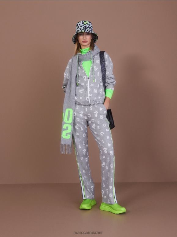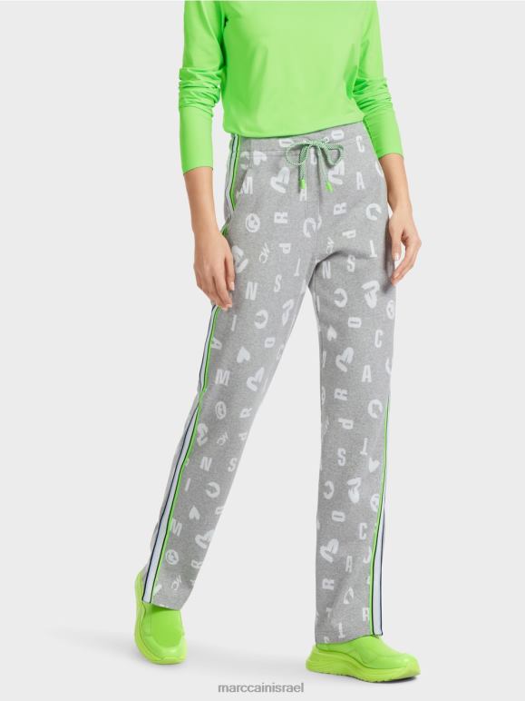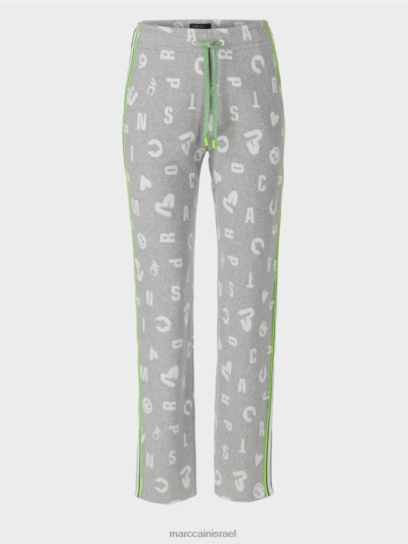 המכנסיים רואן עשויים מהם סריג משובח. דפוס הסריגה הכולל אותיות, לבבות וסמיילים. קונטרסט מגניב מסופק על ידי פס הרשת הצבעוני עם גבולות לאורך התפר הצדדי. פרטים פונקציונליים הם כיסי הצד ורצועת המותן עם שרוך.