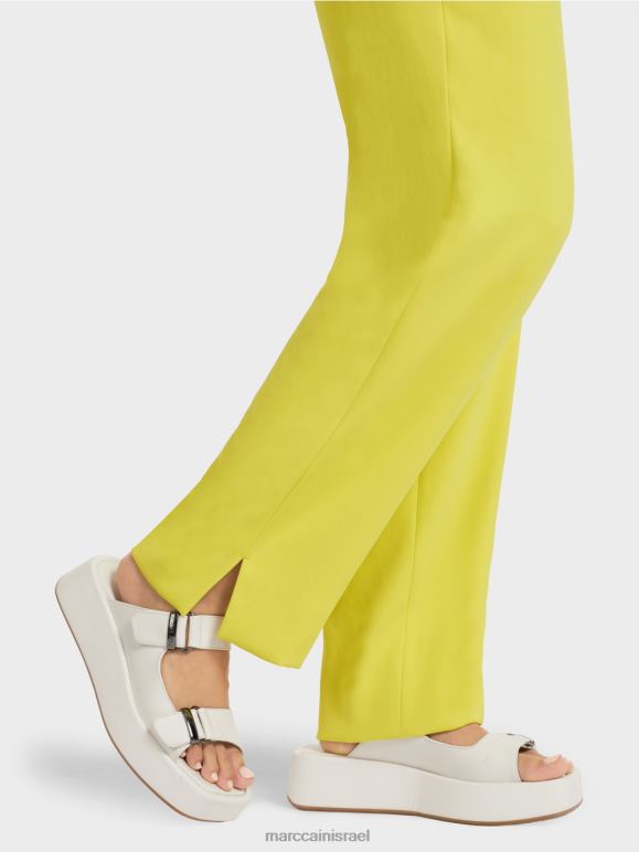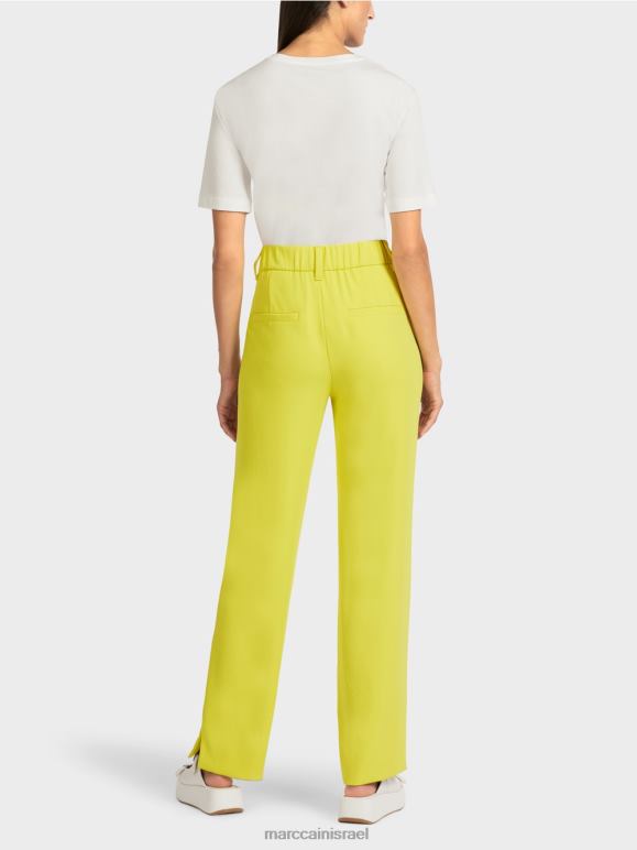הגזרה הקלאסית והחומר העטוף ברכות הופכים את המכנסיים הללו לאלגנטיים במיוחד. המכפלת הגבוהה והחריצים הצדדיים קבעו את רוחב הרגל. הגב האלסטי מבטיח שהמכנסיים מרגישים נוחים ללבישה. למכנסיים ארבעה כיסים: שני כיסים צדדיים בחזית וכיסי רצועות מאחור.