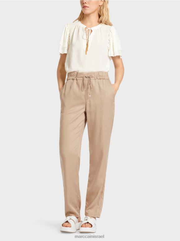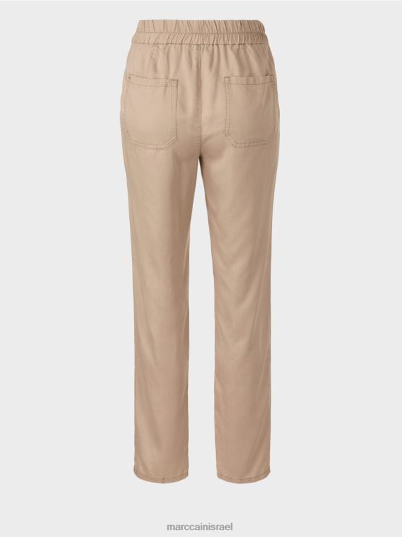 מכנסי ריברה אלה רחבים בירך והרגל מתחדדות עד הקרסוליים. חגורת המותן חלקה מלפנים ובסגנון הג'וגר בצדדים ומאחור. השרוך עם אלמנטים דקורטיביים בקצוות מהווה תכונה מושכת את העין. למכנסיים יש כיסי תיקון מאחור. בגד זה עשוי מחומר הגלם המתחדש Lyocell ונושא את תווית הקיימות "לחשוב מחדש ביחד".