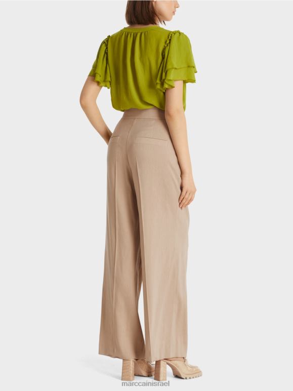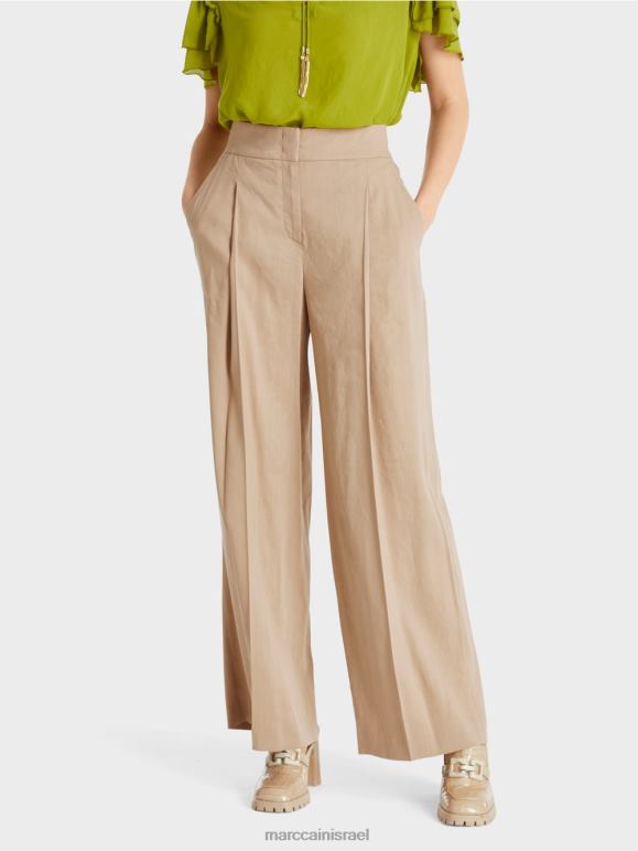 מכנסיים אלו מצוידים במותניים ורחבים ברגל, מזכירים את הסגנון של שנות השבעים. היבטים עכשוויים מוצגים בהתאמה הרופפת ובאורך הנוסף העדין. האיכות הקיצית הקלילה מסופקת על ידי התערובת של פשתן וויסקוזה.