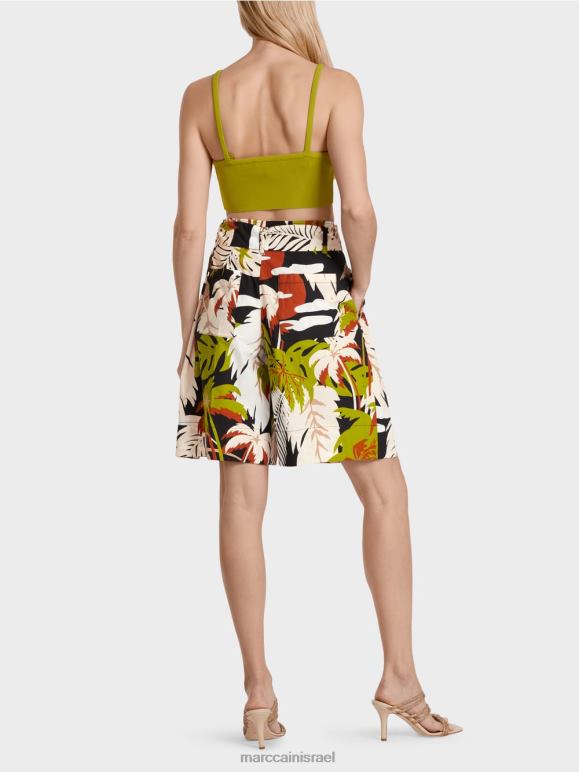 המכנסיים הקצרים האלה מודפסים על כל הגוף עם מוטיבים מסוגננים של נוף טרופי. הדפס פרוות החיות על חגורת העיטוף וכיסי הצד היוצרים ניגודיות מסוגננת. למכנסיים יש כיסי תיקון מאחור בסגנון שקית נייר.