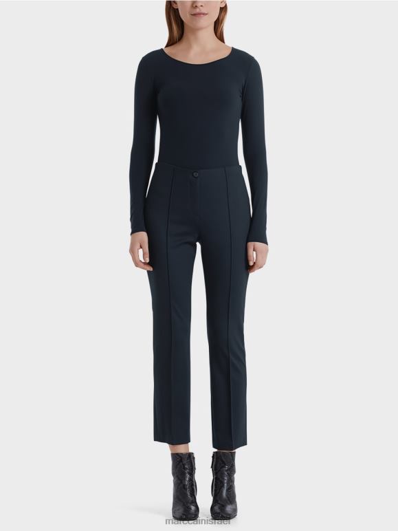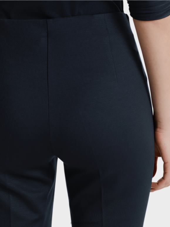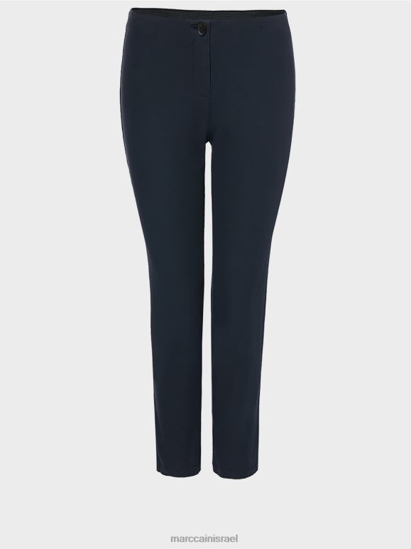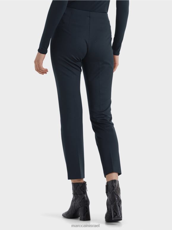 מכנסי 7/8 צרים עם קמט מגוהץ ורצועת מותן אלסטית. למכנס יש רגל ישרה והם מהודקים מלפנים עם רוכסן וכפתור.
