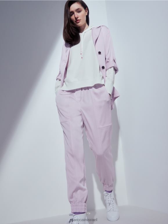 המכנסיים האלה כוללים רצועת מותן ומכפלת. ארבעת כיסי התיקון והתפר הקדמי המרכזי מוסיפים מגע ספורטיבי. תערובת הוויסקוזה והאלסטן הזורמים ברכות יוצרת צללית דמות רפרפת.