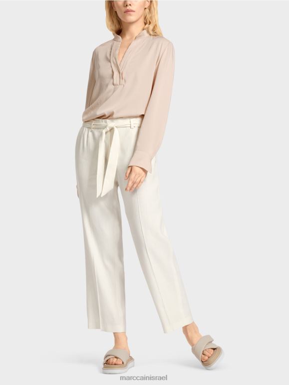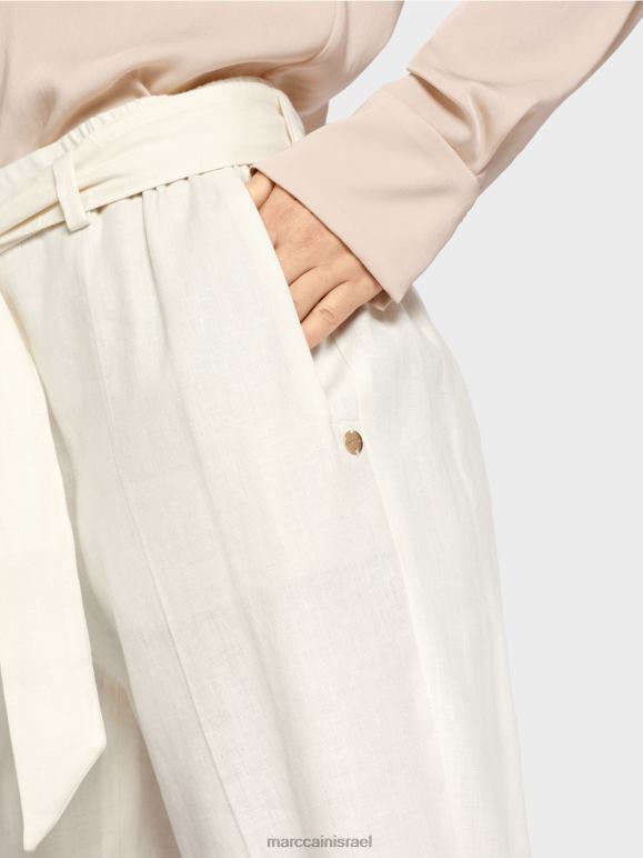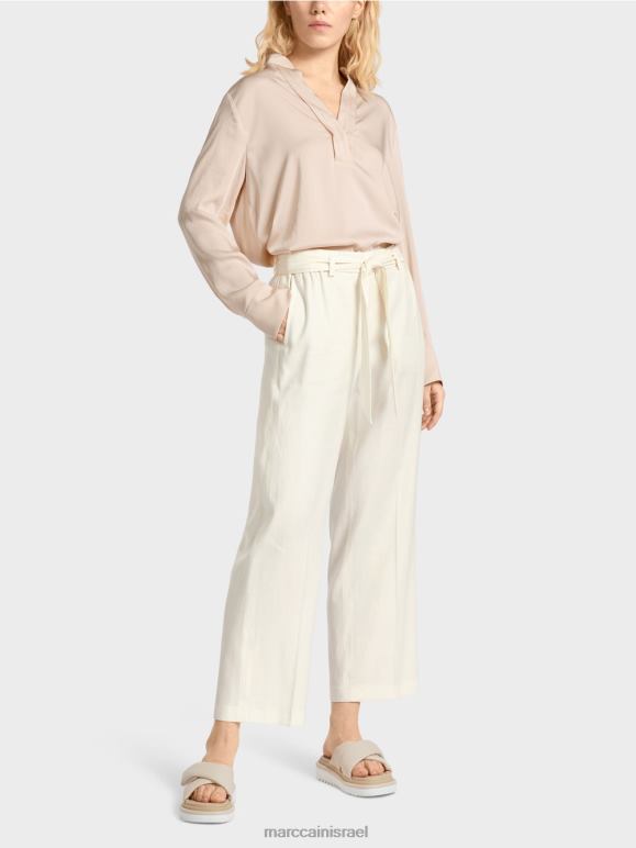 מכנסי Wardha ב- Softly פשתן זורם תערובת ויסקוזה. הם בעיצוב קלאסי ברובו הכוללים קמטים לחוץ, לולאות חגורה, כיסים צדדיים בחזית וכיסי רצועות מאחור. חגורת המותן והחגורה העוטפת מוסיפים מגע אופנתי.