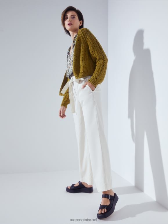 לבגד זה בסגנון שקית נייר יש רצועת מותן גבוהה שנראית מעט אסוף כאשר היא לובשת עם חגורה. הירכיים והרגליים הרפויות מגדירות את הגזרה. השוליים הרחבים של המכנסיים מתוחים עם תפרים. מכנסיים אלה עשויים מכותנה אורגנית ונושאים את תווית הקיימות "לחשוב מחדש ביחד".