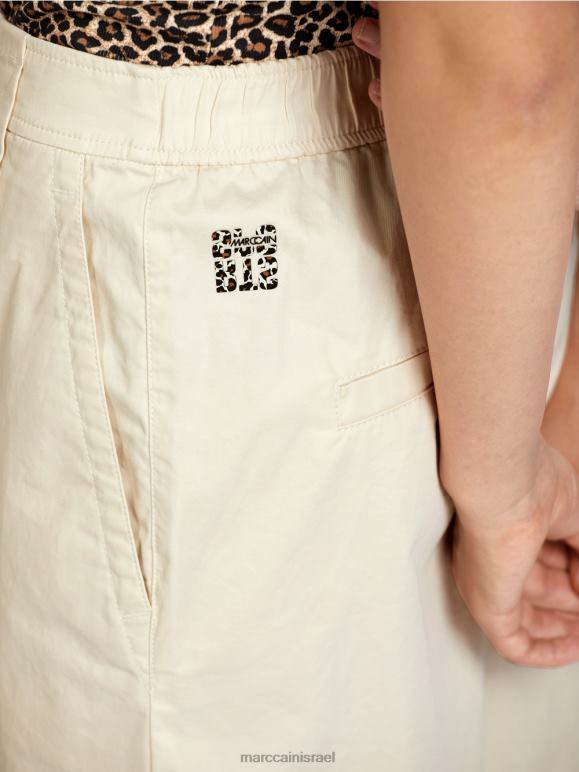 מכנסיים קצרים בצבעים קלאסיים עם גימור ברק מט. השילוב של מותניים צמודים ורגליים רחבות מדגיש את הצללית הנשית. החלק האחורי של חגורת המותן אלסטי, והרפיון של הרגליים מתבטל על ידי תפירה על המכפלות. למכנסיים יש שני כיסים משובצים בחזית ושני כיסי רצועות מאחור.