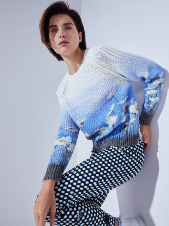 עיצוב הנקודות והדבורה המשובבות שובר את הקלישאה שמכנסיים הם החלק המאופק בארון הבגדים . המכנסיים בגזרה דקה ויש להם קמטים דחוסים תפורים. רצועת מותן אלסטית ובד נמתח הופכים אותם לנוחים במיוחד ללבישה.