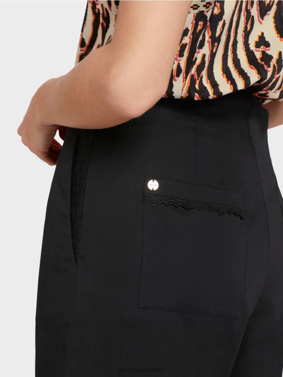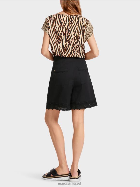 המכנסיים הקצרים האלה עשויים מכותנה טהורה ומסתיימים עם עיטור תחרה בשולי. יש עיטור תחרה צר יותר על כיסי התיקון מאחור. הסגנון מעוצב ללא רצועת מותן והמותניים מעוצבים על ידי קפלי מותניים תפורים. הם מהודקים עם רוכסן בתפר בצד.