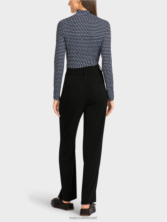 הגזרה הקלאסית והחומר העטוף ברכות הופכים את המכנסיים הללו לאלגנטיים במיוחד. המכפלת הגבוהה והחריצים הצדדיים קבעו את רוחב הרגל. הגב האלסטי מבטיח שהמכנסיים מרגישים נוחים ללבישה. למכנסיים ארבעה כיסים: שני כיסים צדדיים בחזית וכיסי רצועות מאחור.