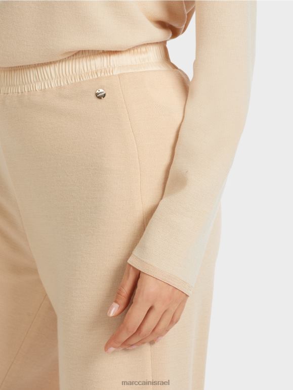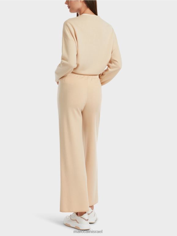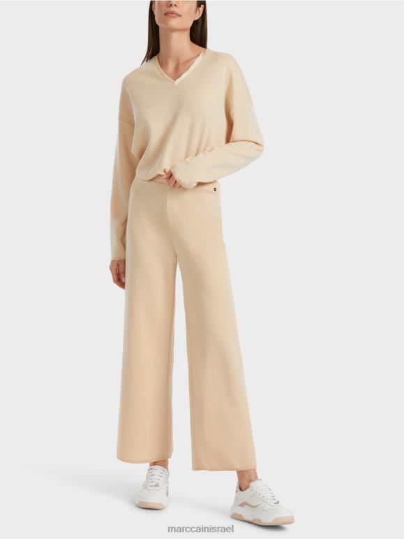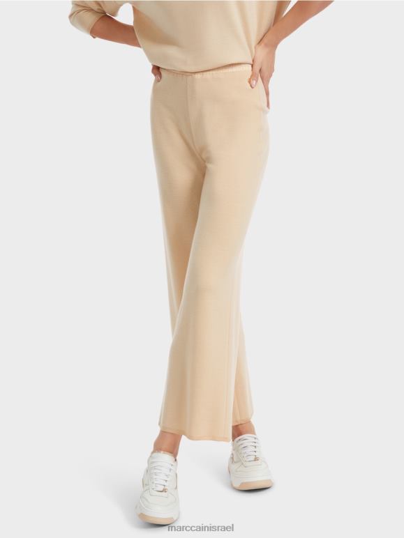 מכנסי קז'ואל בשילוב חומרים עם צמר. מכנסי הסריג האלה משכנעים עם הרגל הרחבה במיוחד והרצועה האלסטית שלהם. היצירה "סרוגה בגרמניה": סריגת החוטים במכונות סריגה אולטרה-מודרניות וגימור הבדים מתבצעים בגרמניה. החלקים הבודדים, כגון שרוולים, חלק קדמי וכו', נתפרים יחד בחברות שותפות אירופאיות.