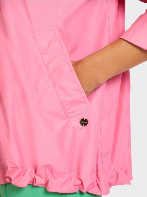 ז'קט חוצות זה עשוי מתערובת של פוליאסטר וכותנה ממוחזרים ונושא את ה"חשיבה מחדש ביחד" תווית קיימות. צללית קו ה-A ושולי האחורי המעוגל מעט מזכירים את שנות החמישים. ניתן להתאים את רוחב המכפלת בעזרת שרוך. לז'קט יש כיס נסתר עם כפתורי לחיצה להדק. פרטים נוספים כוללים כיסים משוטים ושרוולים מופנים.