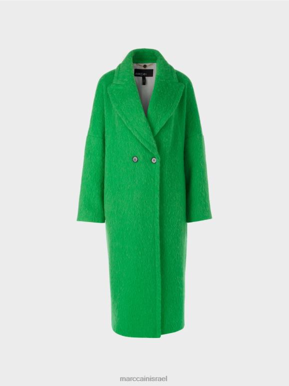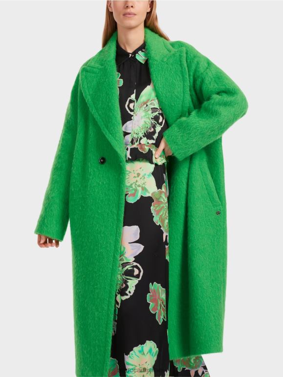 מעיל מחמם עם תוכן צמר, אנגורה ואלפקה אלגנטי. הדשים העולים, כמו גם הכתפיים הרחבות, מדגישות את אופי האוברסייז הקז'ואל של המעיל הזה. כיסי הרצועה המלוכסנים מציעים נוחות ומקום לפריטים קטנים. מעוצב כמעיל בעל חזה כפול, הוא נצמד עם שני כפתורים צבעוניים מנוגדים.