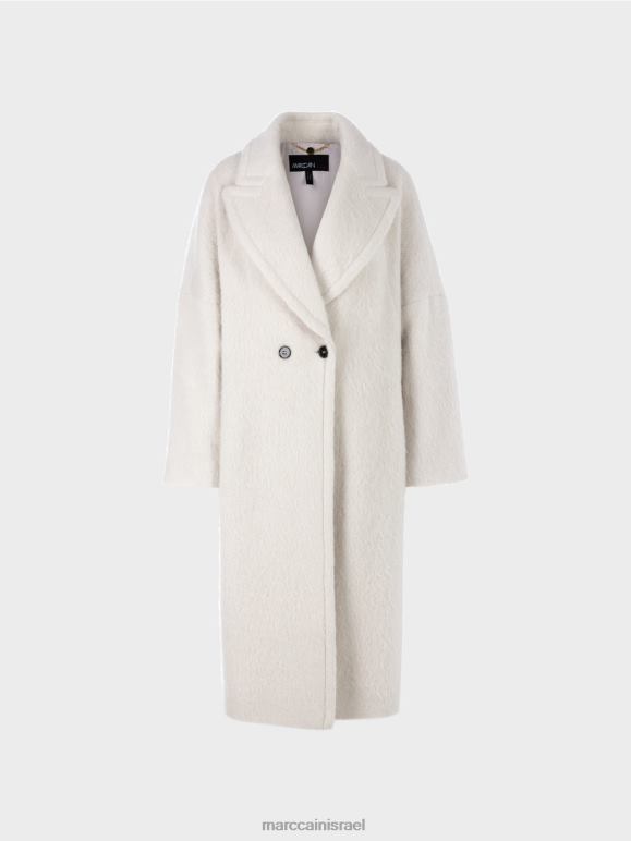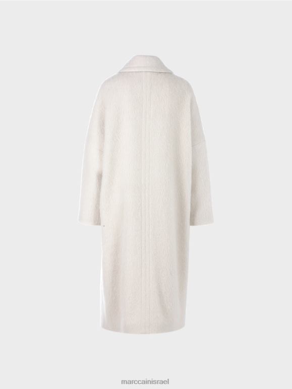 מעיל מחמם עם תוכן צמר, אנגורה ואלפקה אלגנטי. הדשים העולים, כמו גם הכתפיים הרחבות, מדגישות את אופי האוברסייז הקז'ואל של המעיל הזה. כיסי הרצועה המלוכסנים מציעים נוחות ומקום לפריטים קטנים. מעוצב כמעיל בעל חזה כפול, הוא נצמד עם שני כפתורים צבעוניים מנוגדים.