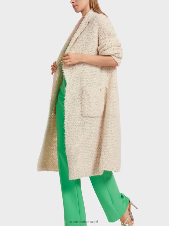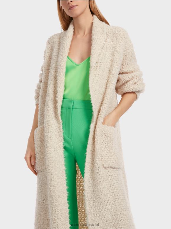 מעיל סרוג עם תוכן צמר ואלפקה. המעיל הזה בגזרה סתמית משכנע עם צווארון הצעיף שלו ושני כיסי תיקון. היצירה "סרוגה בגרמניה": סריגת החוטים במכונות סריגה אולטרה-מודרניות וגימור הבדים מתבצעים בגרמניה. החלקים הבודדים, כגון שרוולים, חלק קדמי וכו', נתפרים יחד בחברות שותפות אירופאיות.