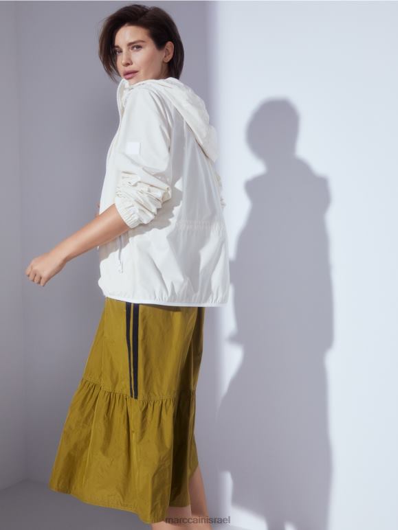 ז'קט החוץ האופנתי הזה הוא קל משקל ובעל גודל אריזה קטן. העיצוב לא עמוס ומצטמצם למרכיביו החיוניים. רוכסני פלסטיק ושולי מכפלת מוסיפים ניגודיות צבע. ניתן לכוון את הרוחב מאחור באמצעות שרוך. השרוולים גמורים עם עיטור אלסטי.