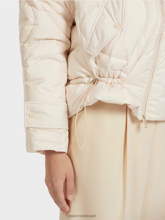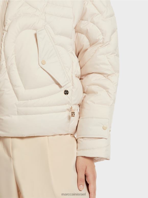 מעיל מחמם עם מילוי פוך ונוצות. ז'קט זה בדוגמת קווילט בצורת לב ונושא את תווית הקיימות "לחשוב מחדש ביחד". יש לו כיסי דש גדולים, לשוניות שרוולים מתכווננות וצווארון עומד. הוא מהדק עם רוכסן דו כיווני. השרוך הנמתח מאפשר איטום רוח נוסף בשוליים.