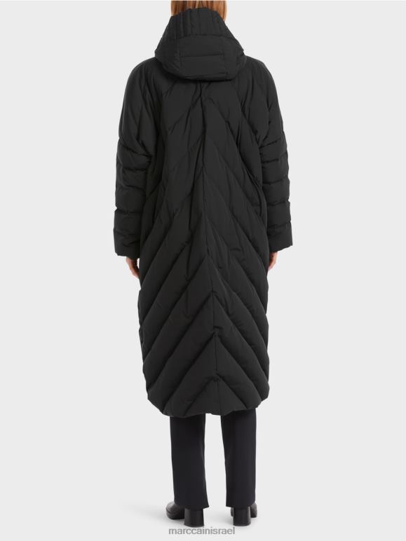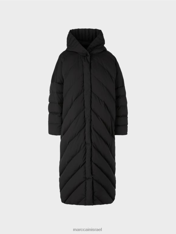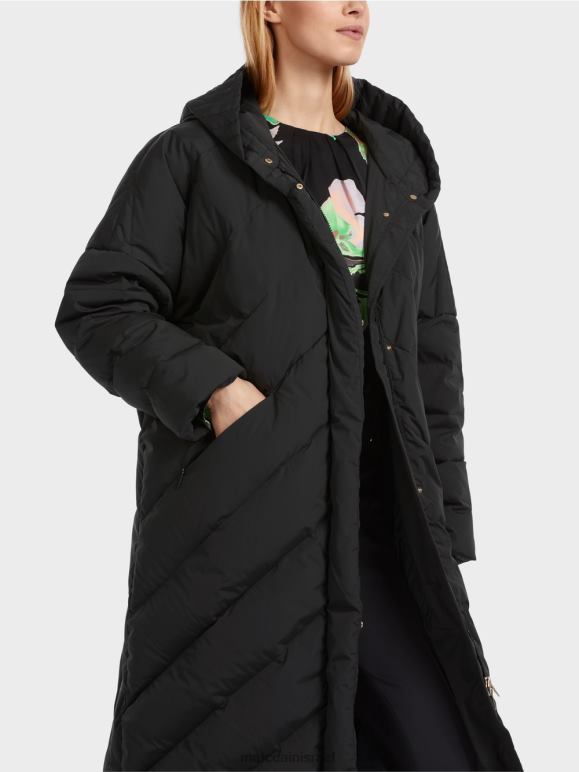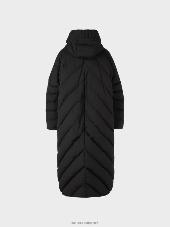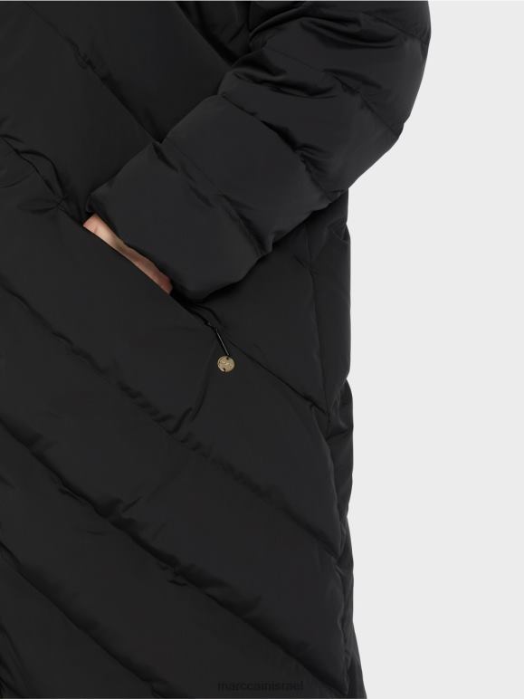 מעיל קווילט מודרני בתערובת חומרים עמיד עם מילוי פוך מחמם. המעיל הארוך הזה מגיע בגזרה רופפת ויש לו קפוצ'ון מגן. הוא מהודק עם רוכסן דו-כיווני וקישוטי לחיצה. הבטנה הפנימית מעוטרת באותיות מארק קין.