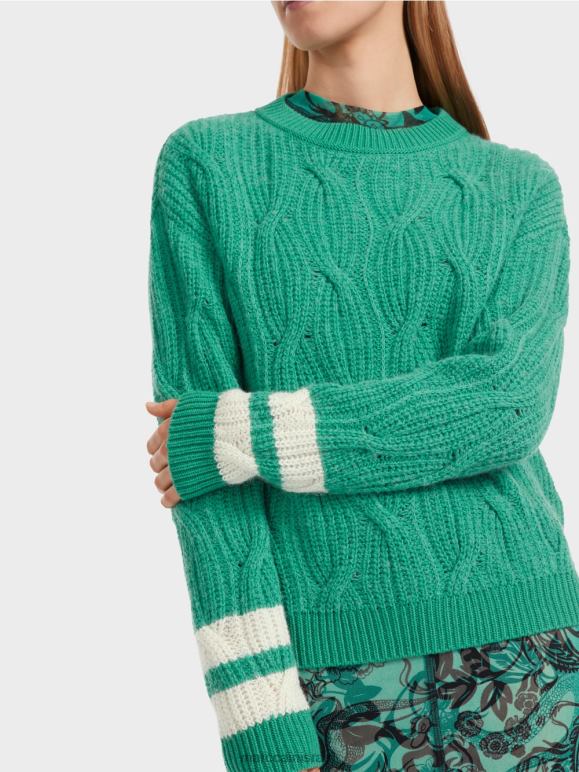 הסוודר מאופיין ברכות וקלילות - בשל החוט העדין והסריג הרפוי. העיצוב מוצא את הרגע שלו בצמות המסוגננות בחזית ובשרוולים. הגב סרוג בדוגמת פטנט. הסוודר "סרוג בגרמניה": הוא סרוג ומקושט בגרמניה באמצעות הטכנולוגיות העדכניות ביותר. החלקים הבודדים, כגון הגב והשרוולים וכו', תפורים יחד בחברות שותפות אירופאיות.