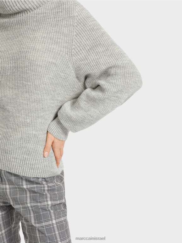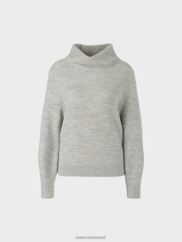 לסוודר יש מבנה גזרה מגניב שנותנת לו קו מתאר ייחודי: הגוף מצטמצם לכיוון המכפלת והשרוול מתנדנד החוצה בדיסקרטיות באזור בית השחי. תוספת הולמת: צווארון העמידה רחב במיוחד. הפריט סרוג מחוט צמר עם תוכן אלפקה.