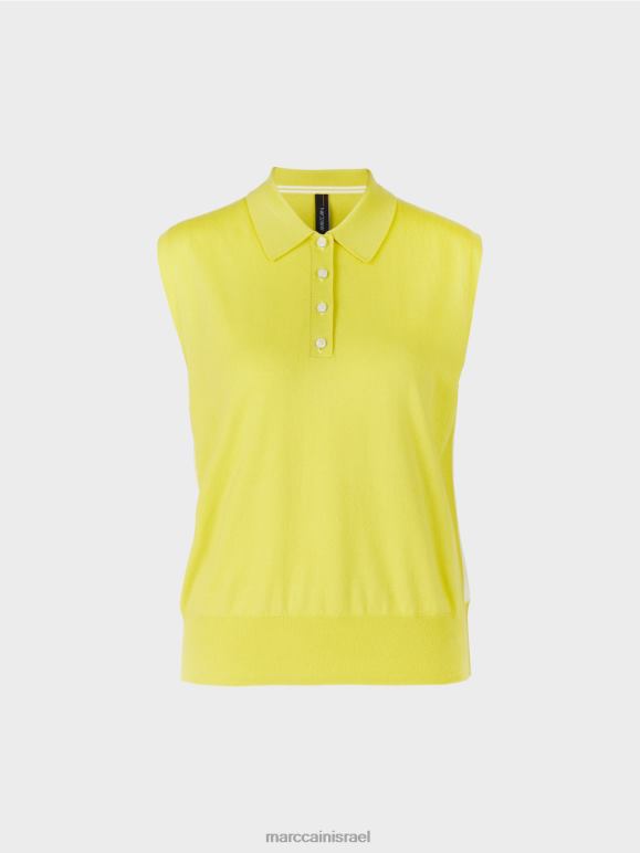 גופרית ירוקה Marc Cain חולצת פולו ללא שרוולים בסריג משובח הַלבָּשָׁה 62FRR1190