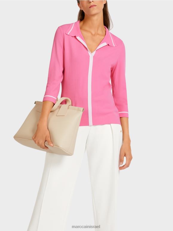 ורוד בהיר Marc Cain חולצת פולו סרוגה "לחשוב מחדש". הַלבָּשָׁה 62FRR1168