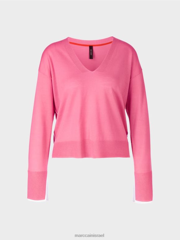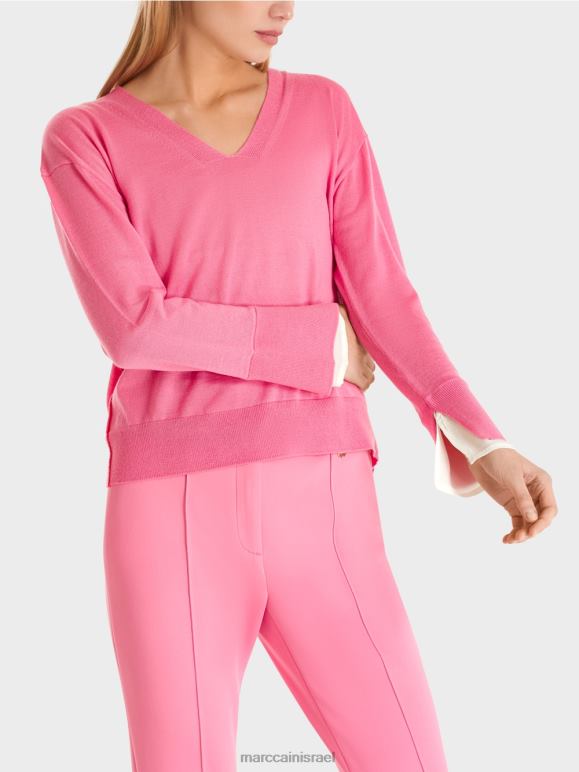 ורוד בהיר Marc Cain סוודר סרוג עדין עם צווארון V הַלבָּשָׁה 62FRR1166