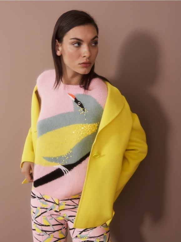 ורוד פודרה רכה Marc Cain סוודר בוקל \"לחשוב מחדש ביחד\". הַלבָּשָׁה 62FRR1119
