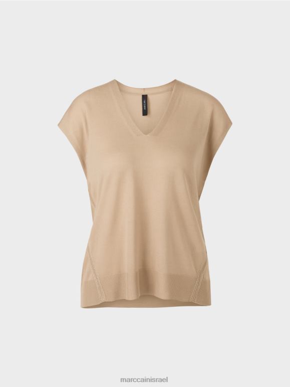 חול עמוק Marc Cain סוודר סרוג עדין ללא שרוולים הַלבָּשָׁה 62FRR1151