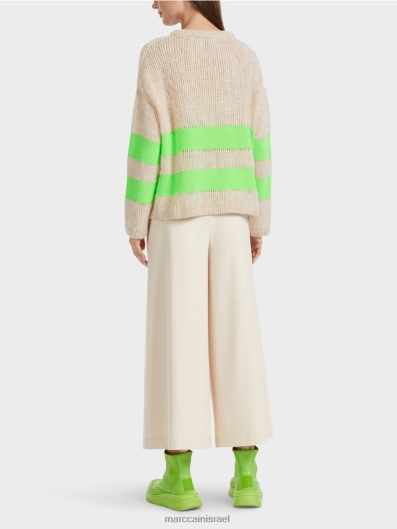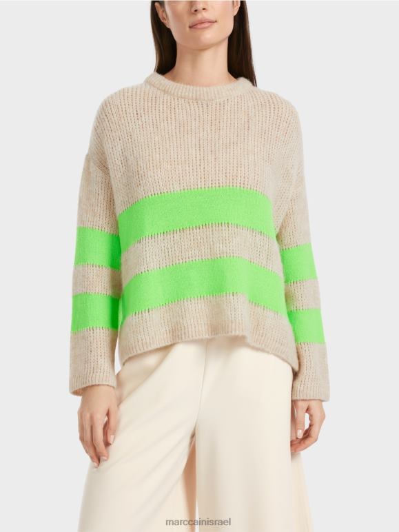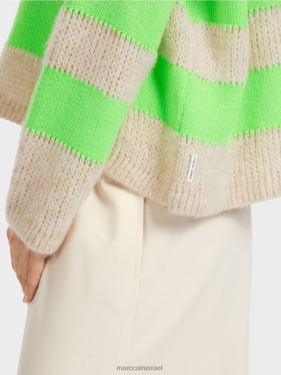 הסוודר סרוג מחוט רך עם תכולת צמר אלפקה. החוט העדין והסריג הרפוי הופכים אותו לרך במיוחד. פס הבלוק סרוג חלק ולכן בולט בצבע ובמרקם. הסוודר "סרוג בגרמניה": הוא סרוג וגימור בגרמניה באמצעות הטכנולוגיות המודרניות ביותר והחלקים הבודדים כגון החלק האחורי והקדמי וכו' נתפרים יחד בחברות שותפות אירופאיות.