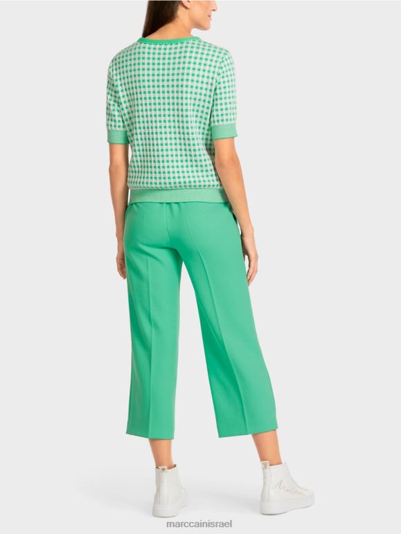 סוודר סרוג נשי עם צווארון עגול ושרוולים קצרים. סוודר זה כולל צ'ק וישי אטרקטיבי וחפתים מצולעים בצבע פשוט. צוואר הצוות כולל פרטים תפורים ביד. פריט זה הוא "סרוג בגרמניה". החוט נסרג במכונות סריגה אולטרה מודרניות ועובר תהליכי גימור טקסטיל בחצרים שלנו בגרמניה. החלקים הבודדים, כגון השרוולים, החלקים הקדמיים וכו', נתפרים יחד על ידי החברות השותפות שלנו באירופה.