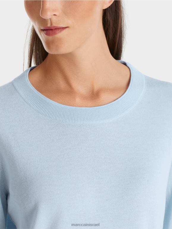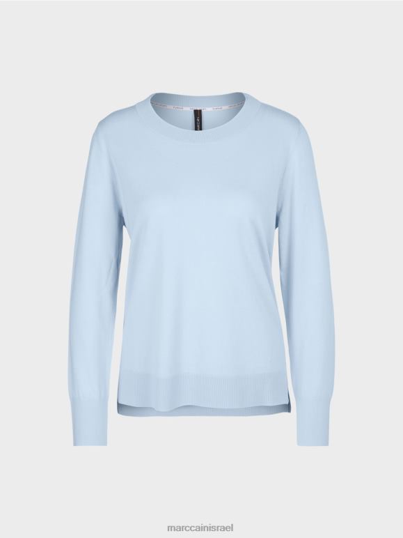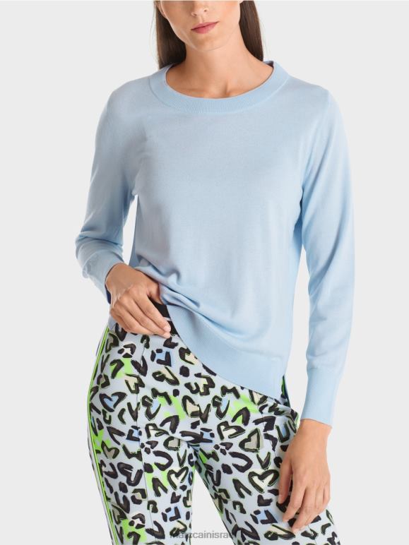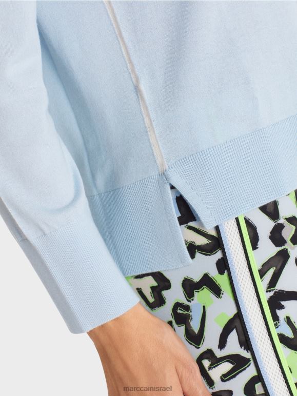 הסוודר הסרוג נושא את תווית הקיימות "לחשוב מחדש ביחד". תערובת החומרים האלגנטית הופכת אותו לקליל ורך. הגזרה היא ברובה קלאסית ומוגדרת באמצעות צוואר עגול וחפתים סריג ושולי. היבטים אופנתיים מופיעים בפס המנוגד בתפרי הצד - ובחרכי הצד.