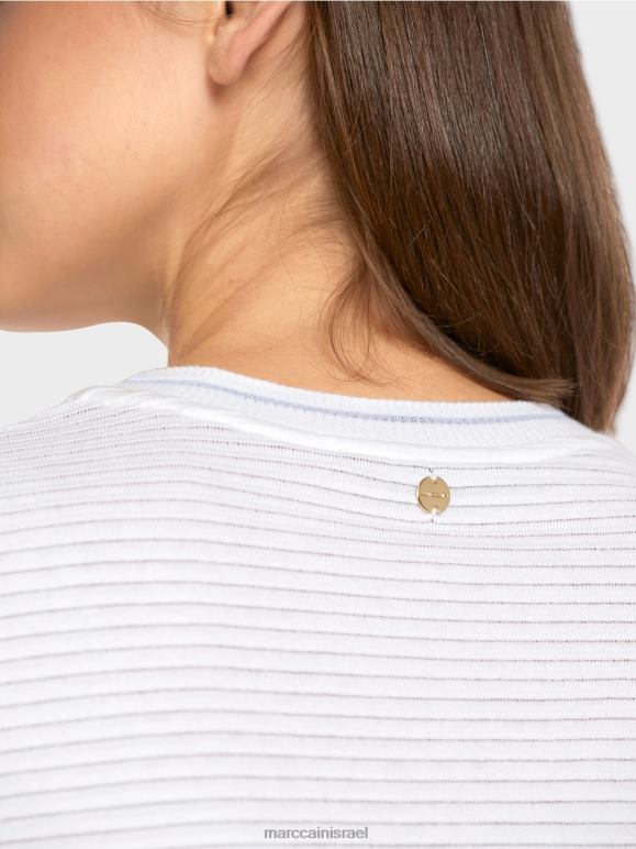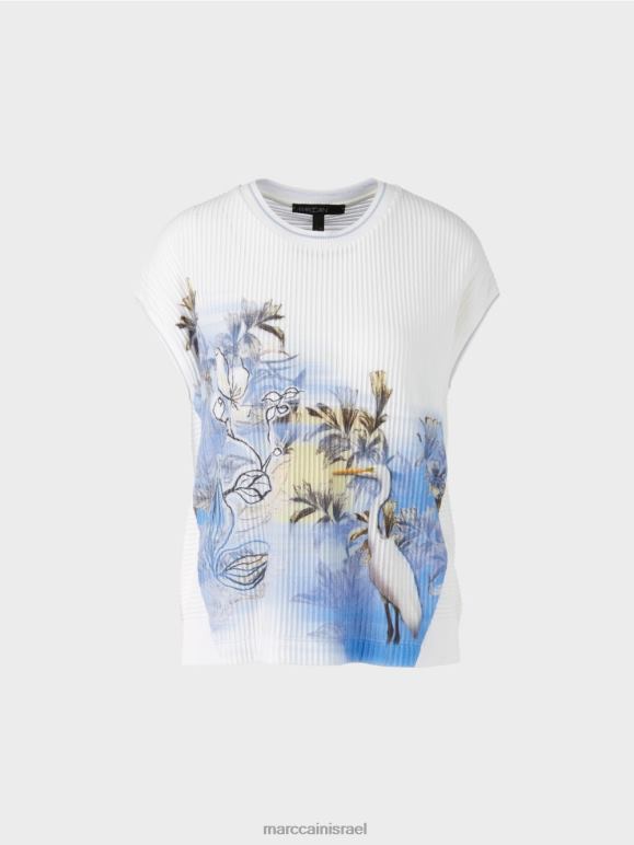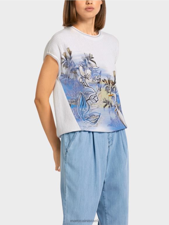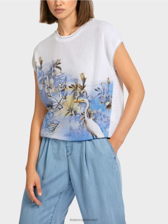 חולצה סרוגה עם מוטיב חי וצומח מסוגנן. החלק העליון עשוי מתערובת כותנה וויסקוזה עדינה במיוחד ומתגאה בשילוב עדין של מרקמים שנוצרו על ידי משחק הגומלין של צלעות אנכיות ואופקיות.