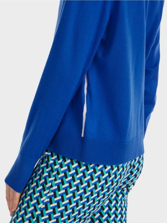 הסוודר נושא את תווית הקיימות "לחשוב מחדש ביחד". הסריג מכיל ויסקוזה וקשמיר וזורם ברכות. הצללית האופנתית נוצרת על ידי הכתפיים הצרות והרוחב הקז'ואל לכיוון המכפלת. התפר הצדדי כולל פס צר בצבע מנוגד. גימור שרוולים ומכפלת עם סריג מצולע.