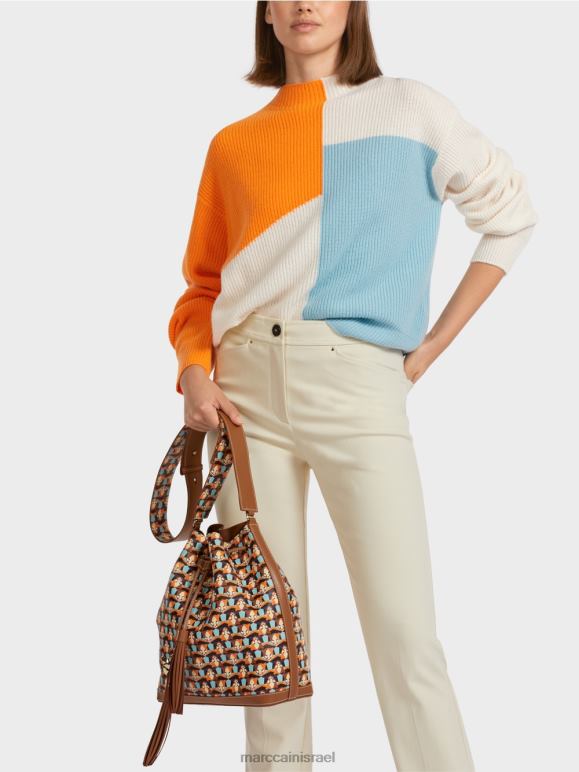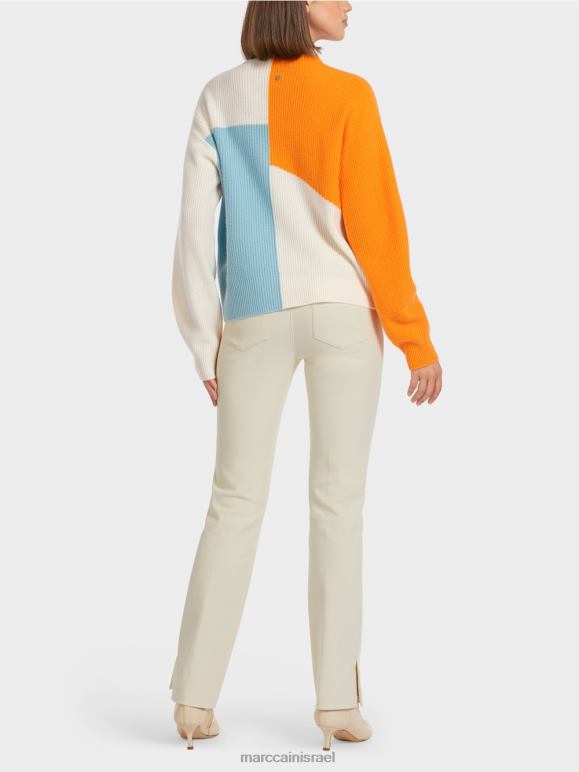 סוודר סרוג משוחרר בשילוב חומרים משובח עם צמר וקשמיר. עם הדפוס בקנה מידה גדול שלו בסגנון בלוק צבעוני, לסוודר הזה יש משיכה גדולה. הוא גם אוברסייז ויש לו כתפיים נפולות. צווארון עגול משלים את העיצוב הקז'ואל.