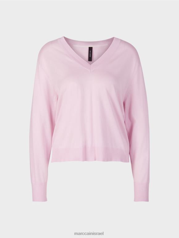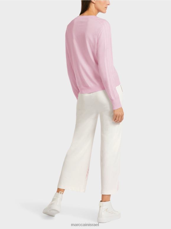 הצללית הזורמת של הסוודר הזה נובעת מתערובת עדינה של חוטי כותנה ומשי. דפוס המרקם העובר על הכתפיים והשרוולים מוסיף פרט עדין. קו הצוואר, השרוולים והשולי מוגמרים בצורה קלאסית עם חפתים מצולעים.