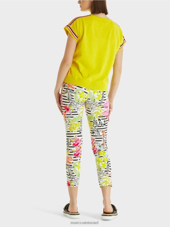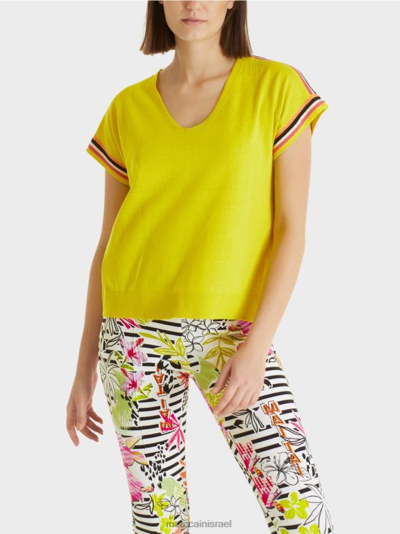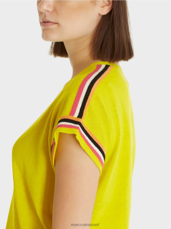 סוודר רופף מכותנה ופשתן. פסים צבעוניים על הכתפיים וחורי הידיים מעניקים לסוודר הסרוג הקז'ואל הזה את המגע הספורטיבי שלו. יש לו צווארון V צונח כדי להתאים. העיצוב סיים עם עיטור מצולע בשוליים.